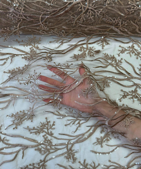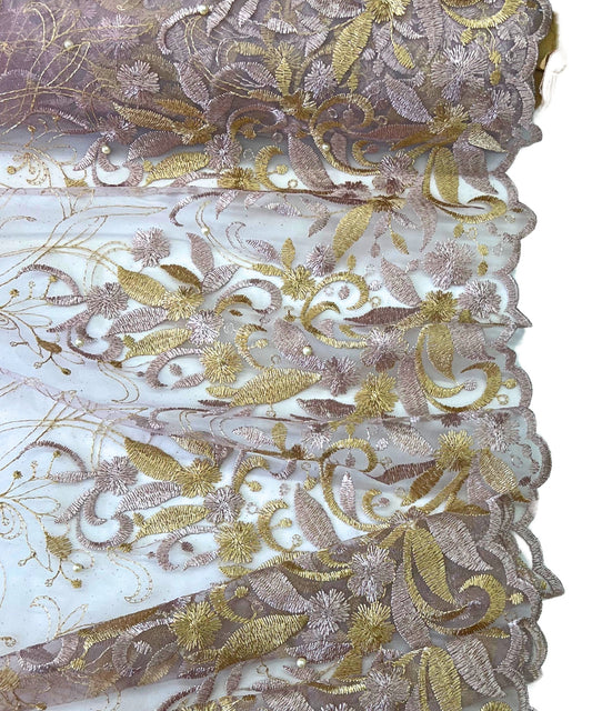 Dusty Rose Gold Embroidered Lace with Pearls