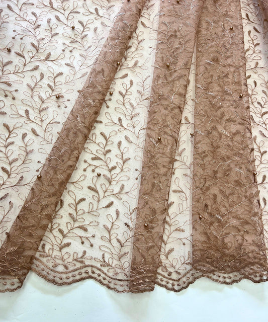 Champagne Embroidered Lace with Pearls