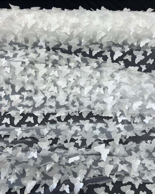 White 3D Butterfly Embroidery Tulle