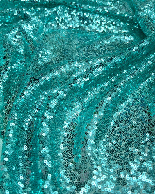 Mint Glitz Sequins Mesh Fabric