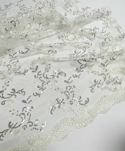 Ivory Sequin Lace Fabric