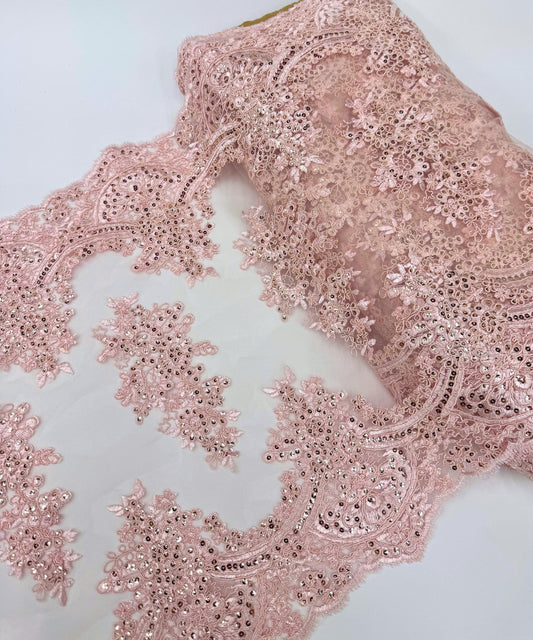 Blush Pink Sequin Lace Fabric for Table Runner
