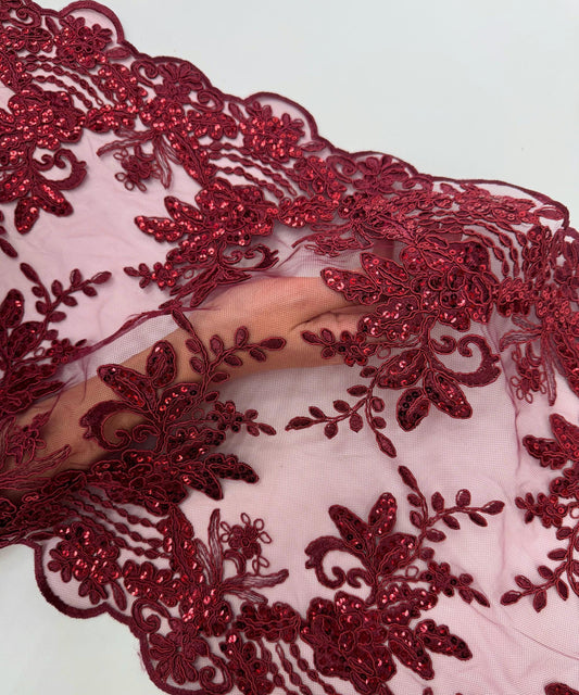 Burgundy Sequin Lace Fabric for Table Runner