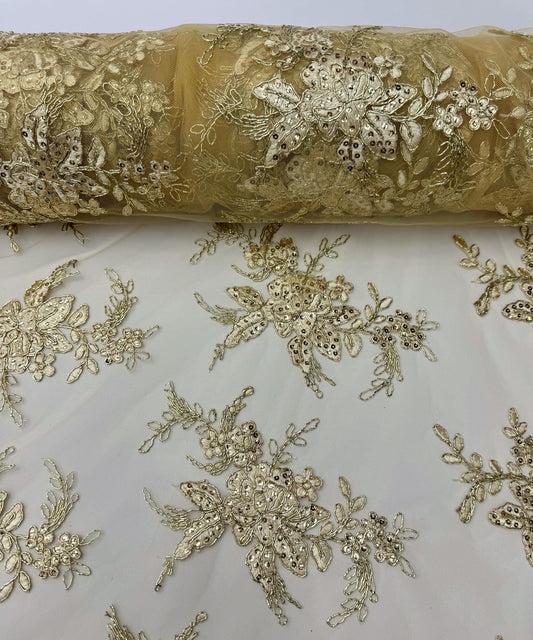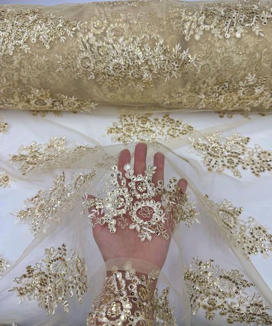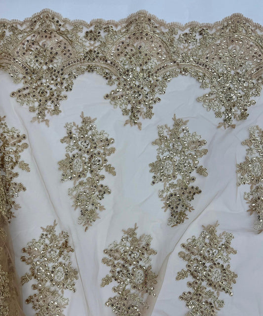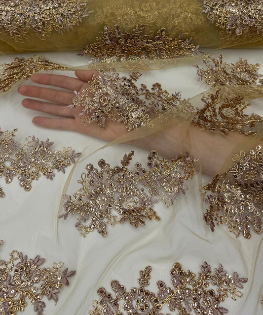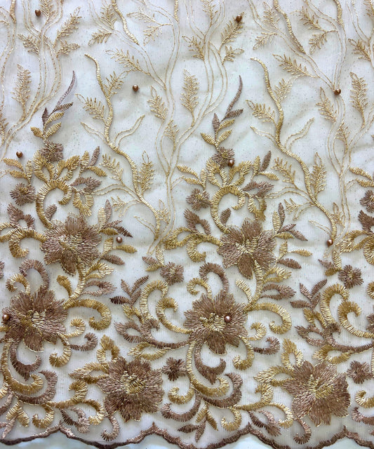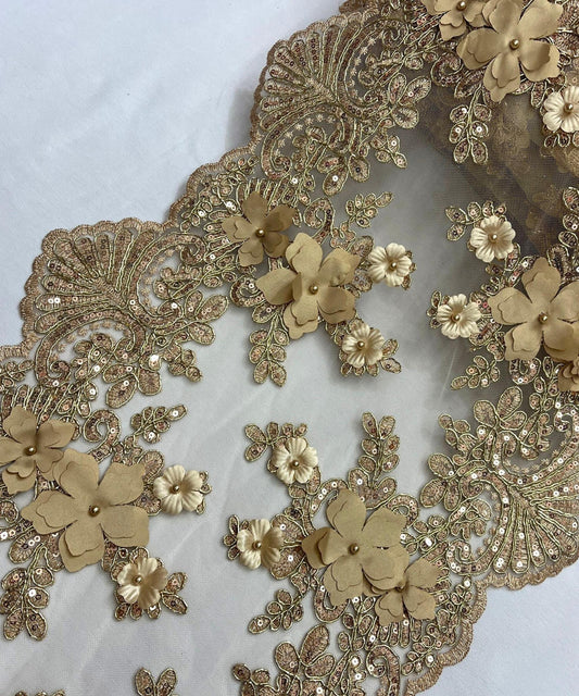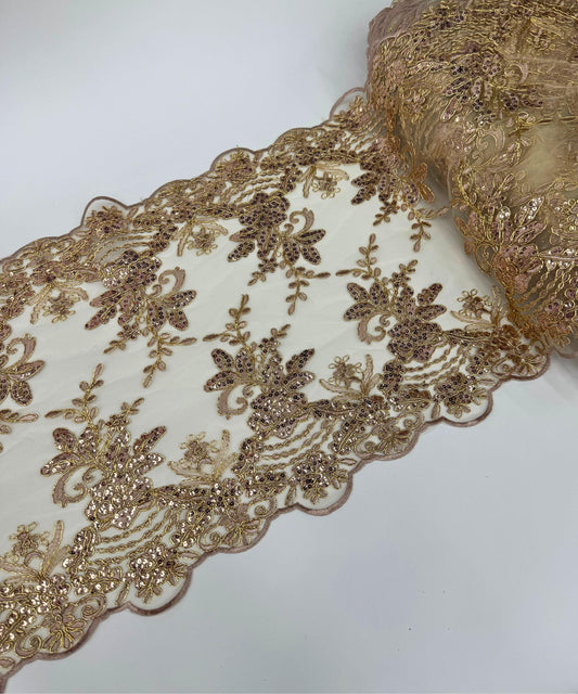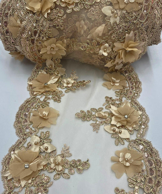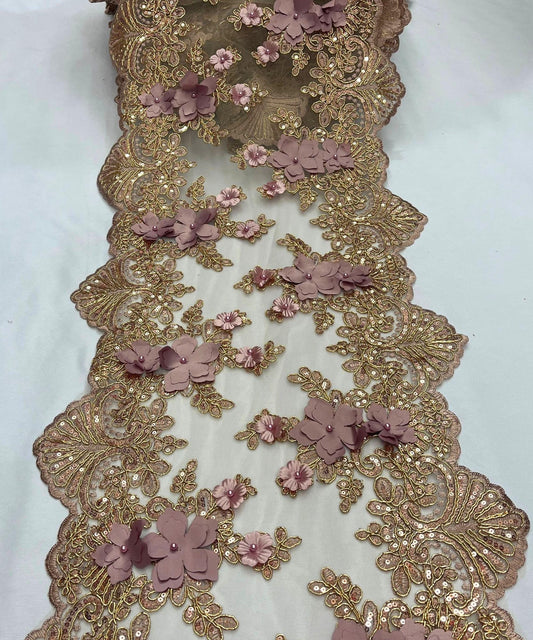 3D Embroidered Rose Gold Floral Lace Table Runner