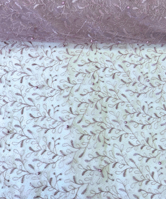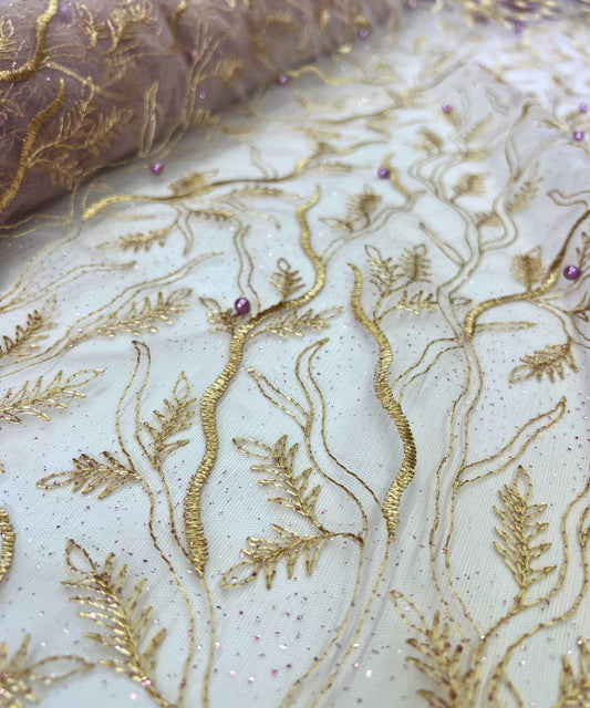Champagne Lace Fabric, Nude Embroidery on Lace, Champagne Embroidered Lace Fabric by the Yard, Bridal Lace for Bridal Veil Bridal Sleeves