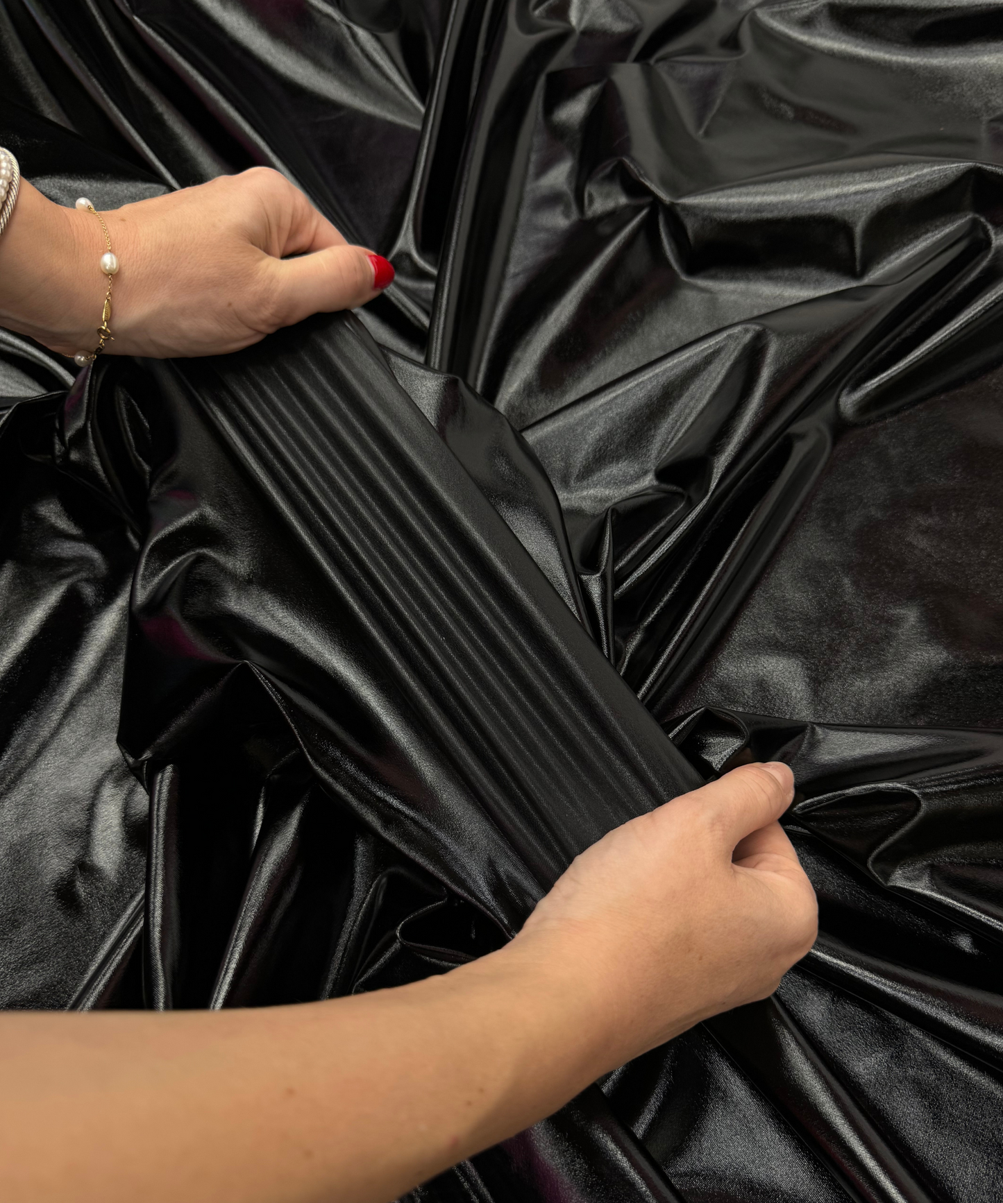 • Touch & Feel: Slick, cool, and stretchy with a smooth, metallic sheen.